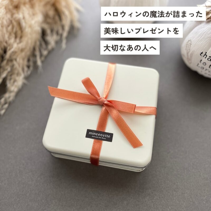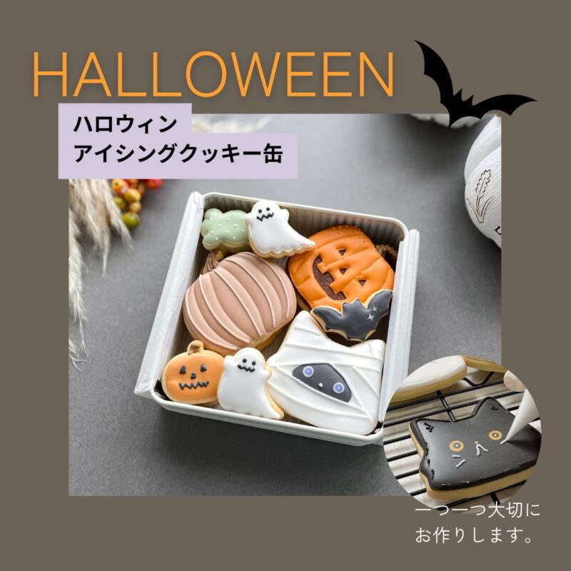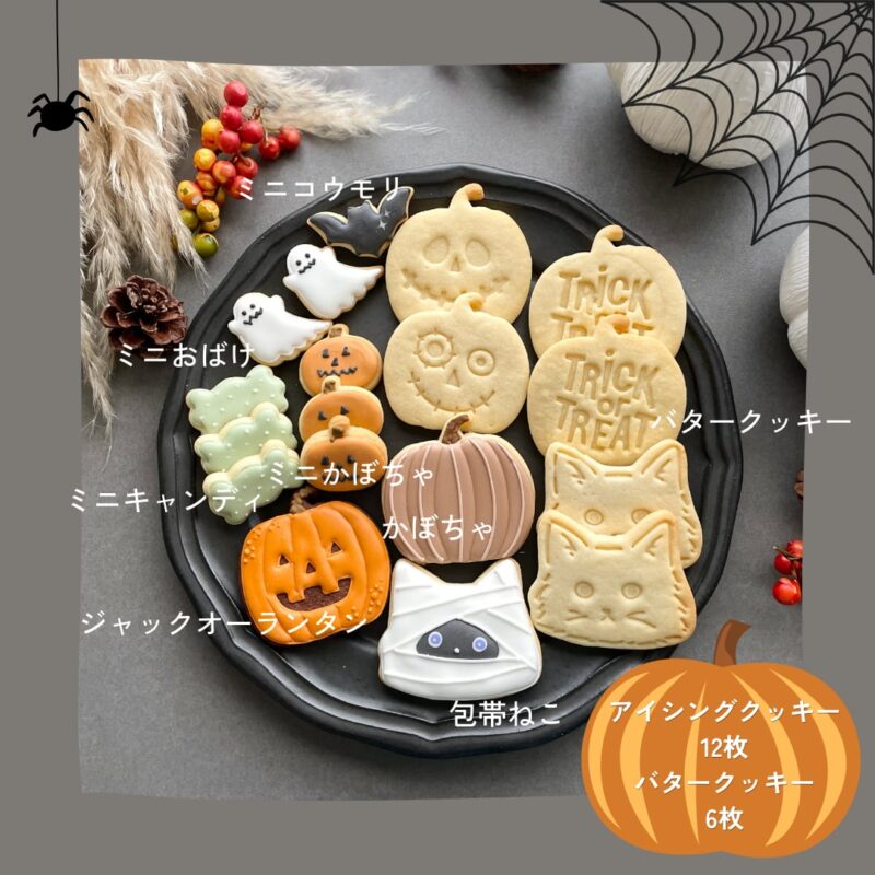 | 内容 | ・包帯ねこアイシングクッキー大1枚(約7cm×5.5cm) ・かぼちゃアイシングクッキー大1枚(約6cm×6cm) ・ジャックオーランタンアイシングクッキー大1枚(約6cm×6cm) ・ミニキャンディアイシングクッキー3枚(約4cm×2.3cm) ・ミニかぼちゃアイシングクッキー3枚(約3.3cm×3.3cm) ・ミニおばけアイシングクッキー2枚(約4cm×3.3cm) ・ミニコウモリアイシングクッキー1枚(約4.7cm×2.3cm) ・かぼちゃスタンプクッキー4枚(約6cm×6cm) ・ミネットクッキー2枚(約7cm×5.5cm) 合計18枚 ・缶サイズ:横15cm×縦15cm×高さ3cm (一枚一枚丁寧に作らせていただきますが、手作りの為、デザインや色に少し違いが生じることがあります。ご了承ください。) |