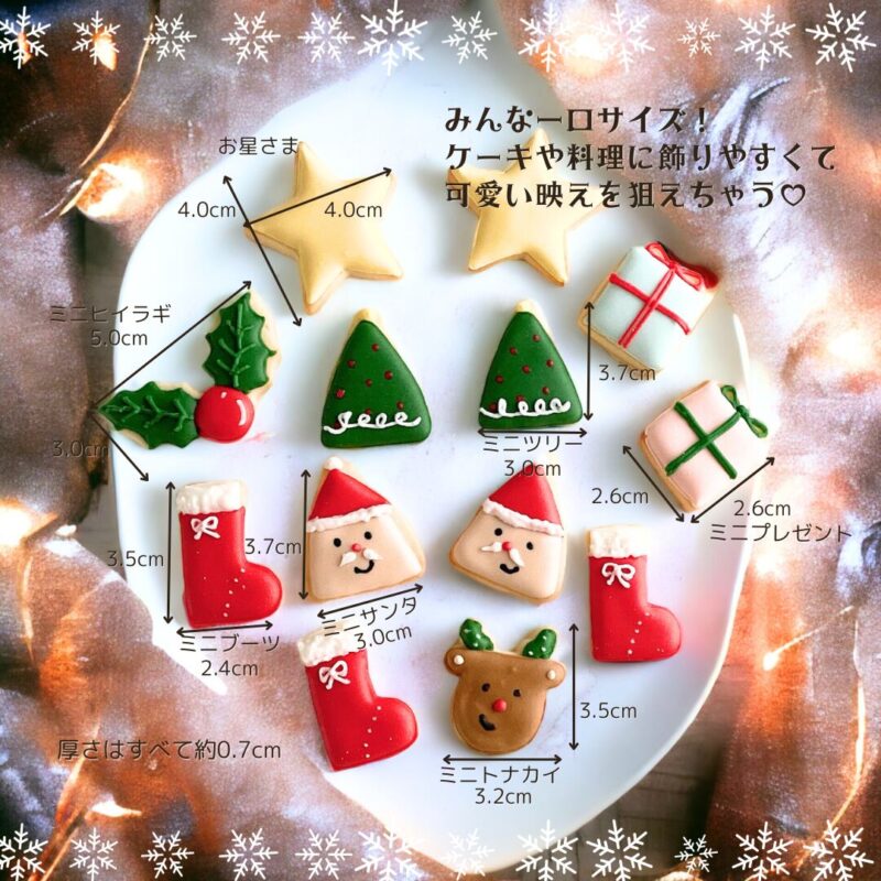 | 内容 | ・ミニサンタ(3.2cm×3.5cm)2枚 ・ミニトナカイ(3.2cm×3.5cm)1枚 ・ミニツリー(3.2cm×3.5cm)2枚 ・ミニプレゼント(2.6cm×2.6cm)2枚 ・ミニヒイラギ(5.0cm×3.0cm)1枚 ・ミニブーツ(2.4cm×3.5cm)3枚 ・お星さま(4.0cm×4.0cm)2枚 計13枚 (一枚一枚丁寧に作らせていただきますが、手作りの為、デザインや色に少し違いが生じることがあります。ご了承ください。) |