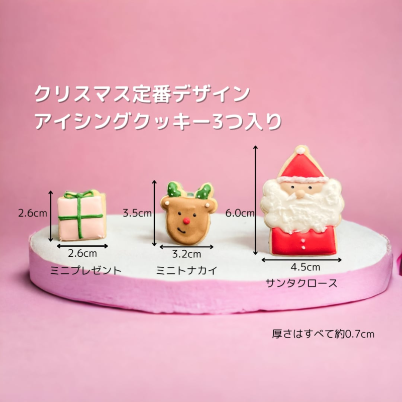 | 内容 | ・サンタクロース(4.5cm×6.0cm)1枚 ・ミニトナカイ(3.2cm×3.5cm)1枚 ・ミニプレゼント(2.6cm×2.6cm)1枚 計3枚 (一枚一枚丁寧に作らせていただきますが、手作りの為、デザインや色に少し違いが生じることがあります。ご了承ください。) |