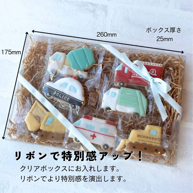 | 破損・事故について | アイシングクッキーは繊細なものです。丁寧に梱包してお送りさせていただきますが、発送後の事故・取扱不注意による破損に関しては返品・交換はできかねますのでご了承ください。 |