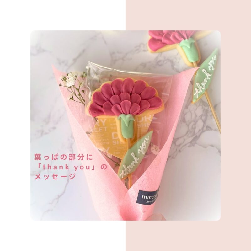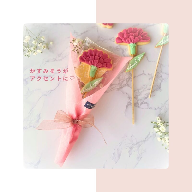 | 内容 | ・カーネーションアイシングクッキースティック 1本 サイズ:約10cm×20cm 重さ:約50g ※スティックの先端にはお気をつけください。 ※商品画像の状態でお届けいたします。それ以上の贈答用の個別ラッピングは行っておりません。ご了承ください。 |